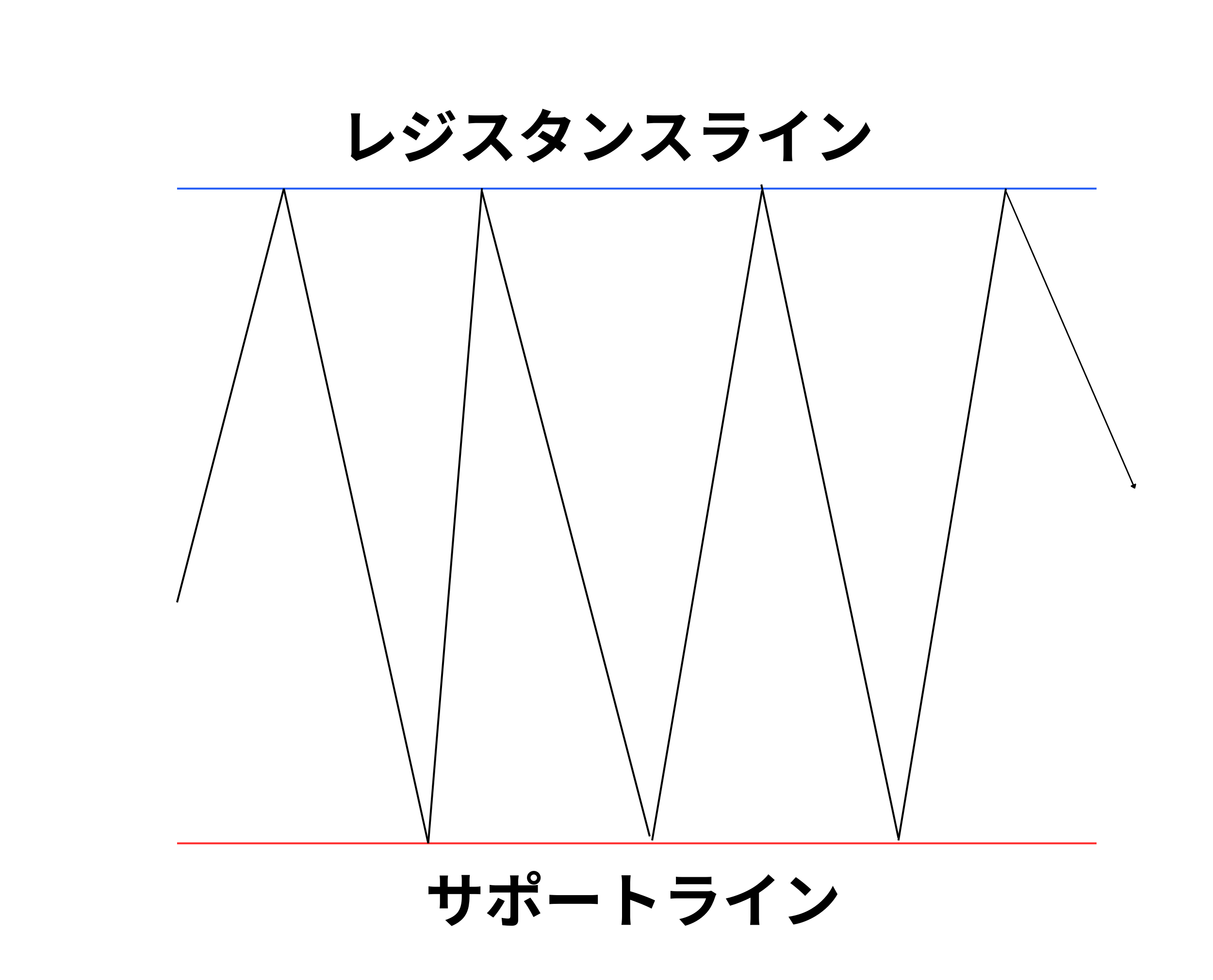 レンジ相場は、レジスタンスラインもしくはサポートラインを超える「ラインブレイク」が発生するまでは、大きな値動きを見せることがほとんどありません。