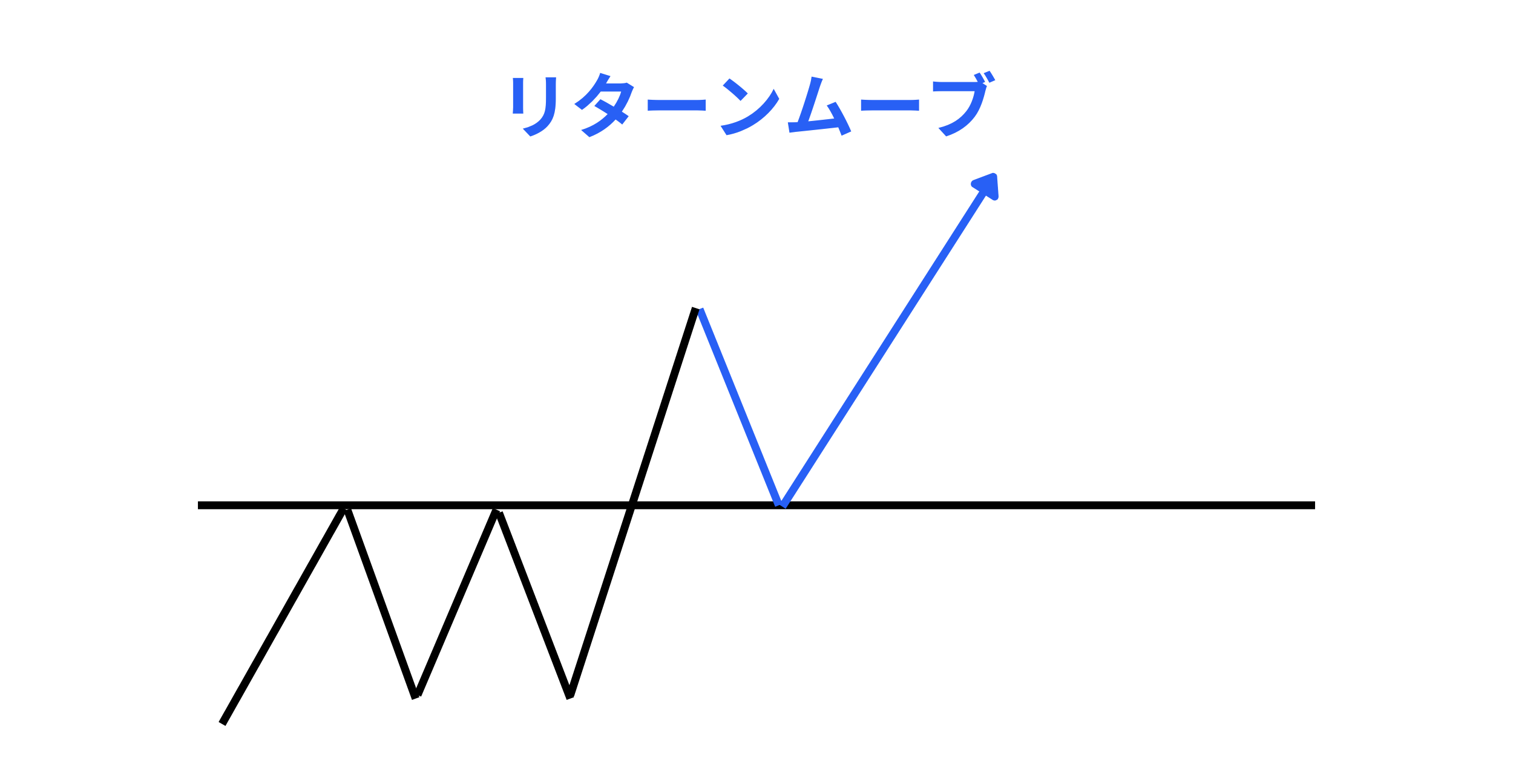 リターンムーブとは、ラインをブレイクした後、再びブレイクしたラインへ戻ろうとする動きのことです。