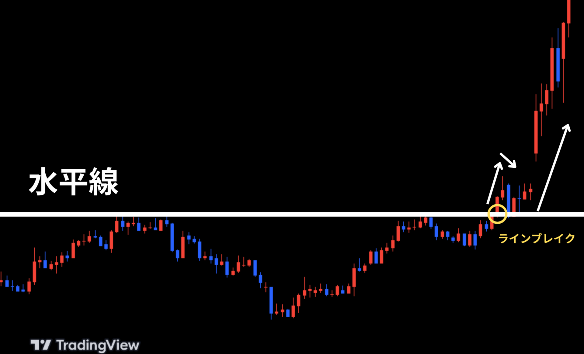 ラインブレイクは売買が集中すると共にボラティリティが高まることによって発生するため、急激な値動きを伴います。