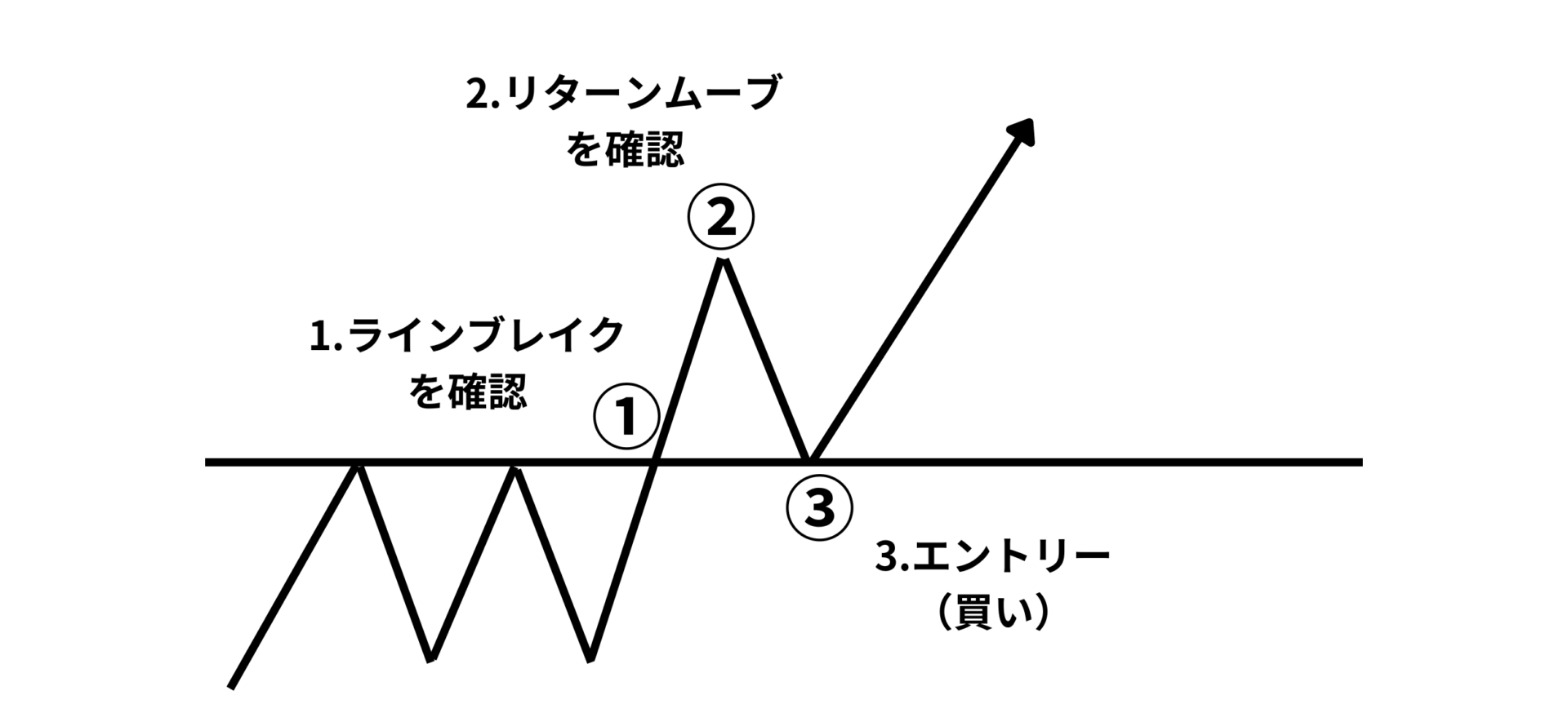下記に今回のチャートにおけるリターンムーブを使った手法をまとめておきます。