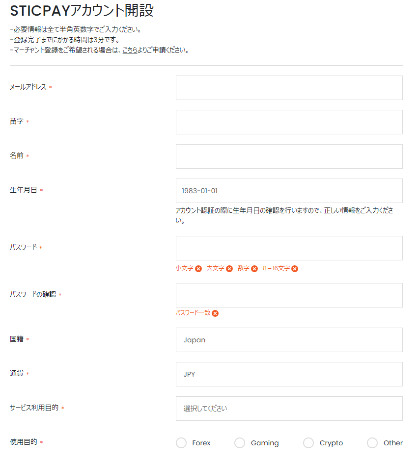 STICPAYを使うためにはまず、STICPAYアカウントを開設する必要があります。
