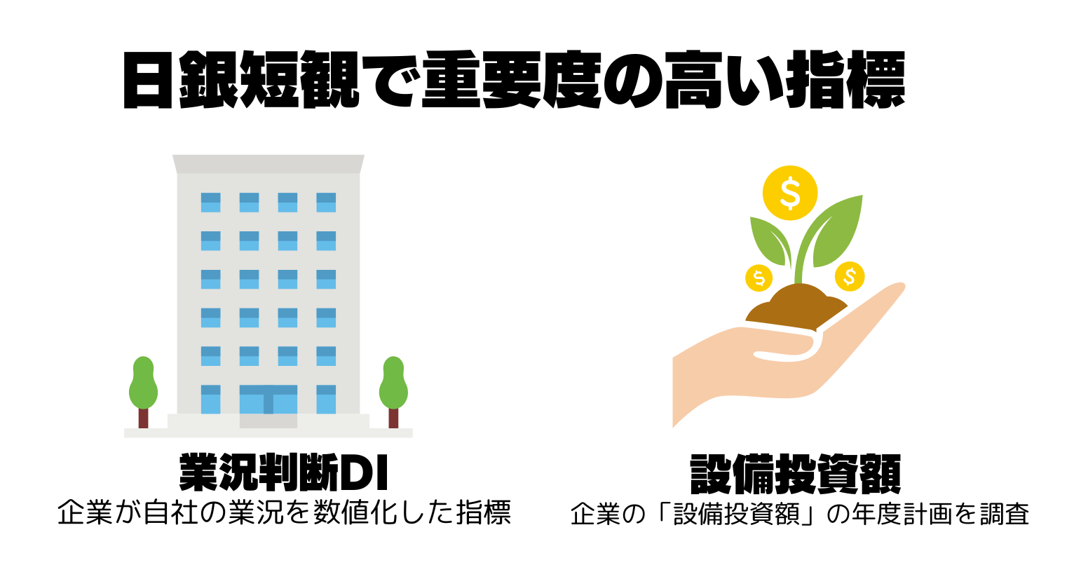 中でも、業況判断DIと設備投資額のデータは、日本の景気を判断するうえで重要な指標とされています。