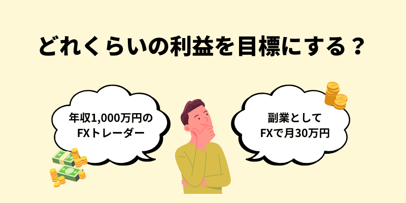FXで目標を立てる際には、最初に自分が目指したい利益の金額を設定してみましょう。