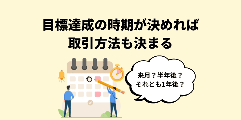 なぜなら、いつまでに目標金額を達成するのか決めていなければ、どのような取引方法を利用するのか決められないからです。
