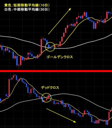 期間設定の異なる2本の移動平均線を使ったトレード手法もあります。