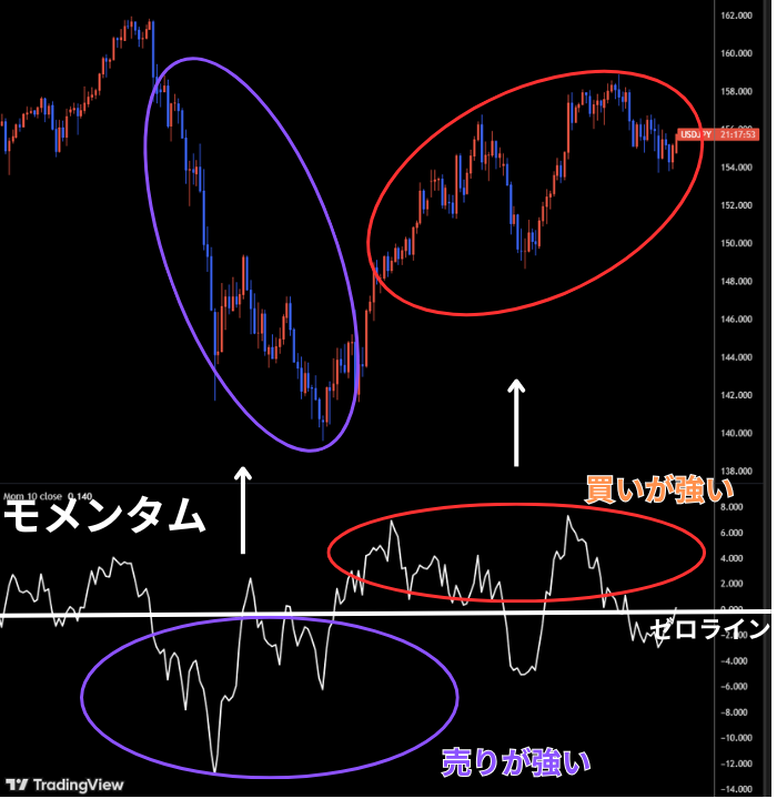 チャート上に表示させることで、トレンドの方向性や強さを把握できます。