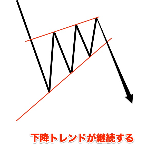 トレンド継続型の上昇ウェッジとは、下降トレンドの途中で一時的に上昇する場合に出現するチャートパターンです。