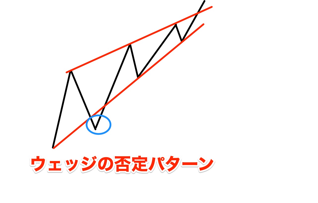 トレンド反転型では、以下のようにウェッジが否定されるパターンもあるので覚えておきましょう。