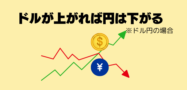 - 片方の通貨が上がるともう片方の通貨も下がるから