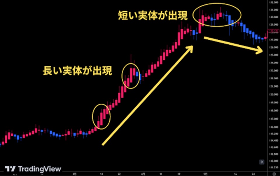 - 実体の長さでトレンドの強さを把握する