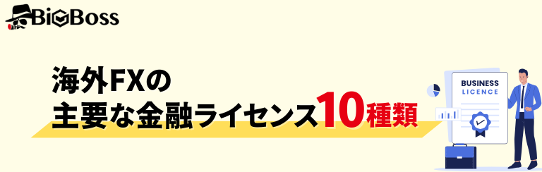 海外FXの主要な金融ライセンスは、下記の通りです。