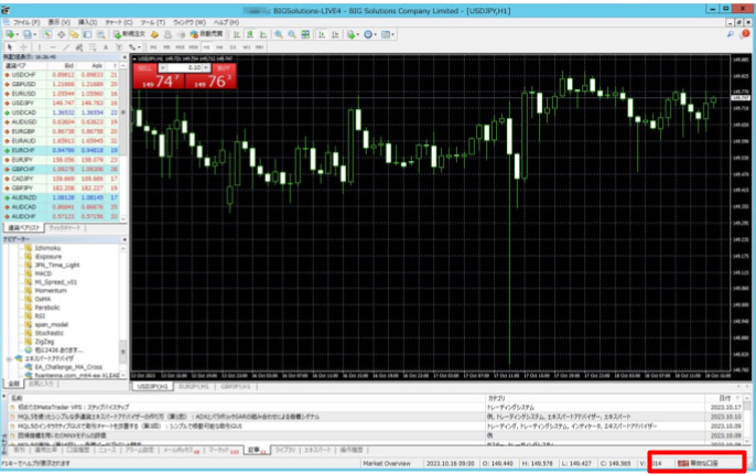 MT4へのログインに失敗すると、右下にあるステータスにエラーが表示されます。