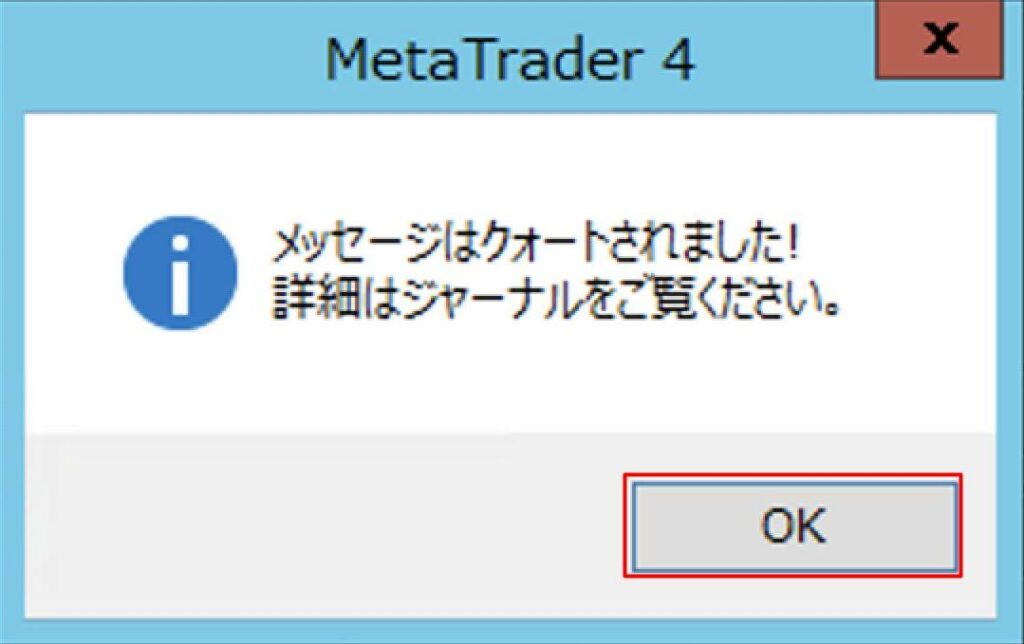以下のような画面が表示されるので「OK」を押して閉じます。Yahoo!メールにMT4からのメールが届いていれば設定完了です。