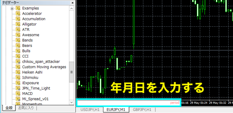- ヒストリカルデータをダウンロードしたい通貨ペアと時間足を選ぶ