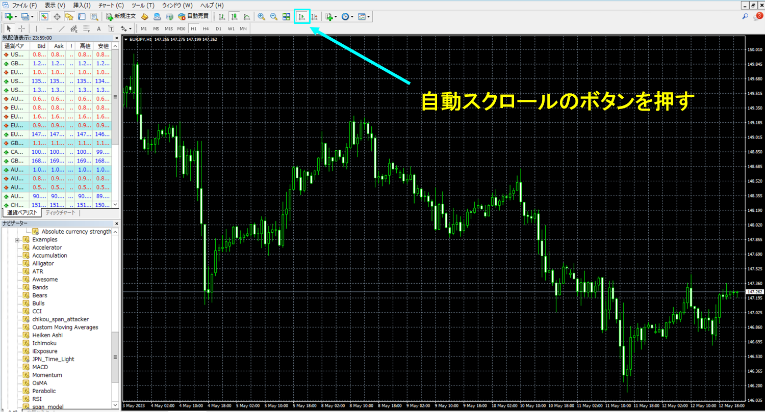 MT4に過去のチャートを表示させるには、以下の設定をする必要があります。