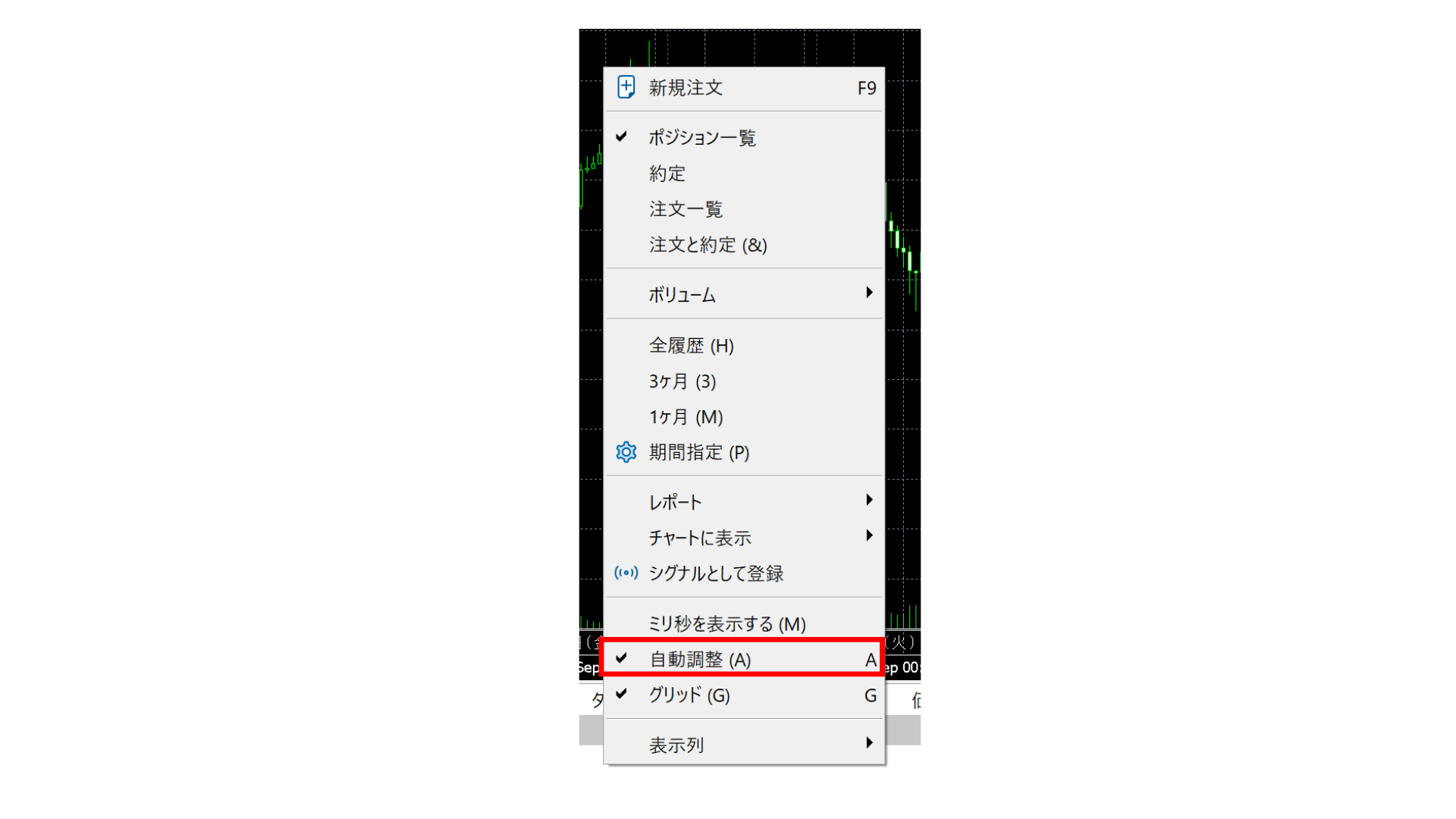 口座履歴内の余白を右クリックし、「自動調整」を選択するとMT5の表示幅に併せて全体が表示されます。