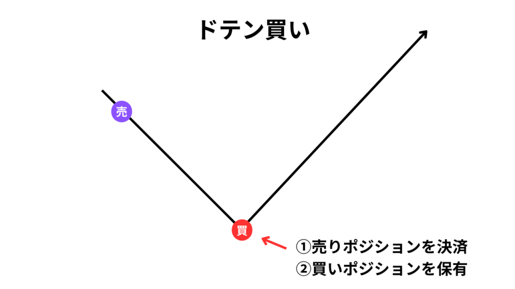 ドテン買いは、保有中の売りポジションを決済してすぐに買いエントリーを出す注文方法です。