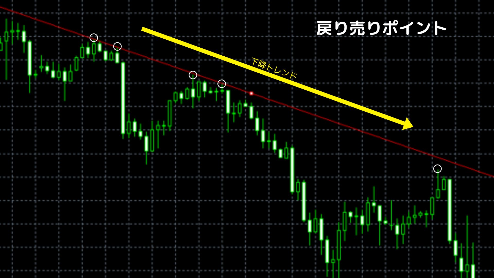 戻り売りとは、下降トレンドで価格が一時的に上昇したときに売りエントリーをする取引手法のことをいいます。