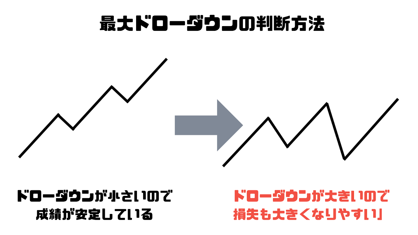 最大ドローダウンを見れば「その自動売買ソフトで最大どれほどの損失が発生するのか」がわかります。