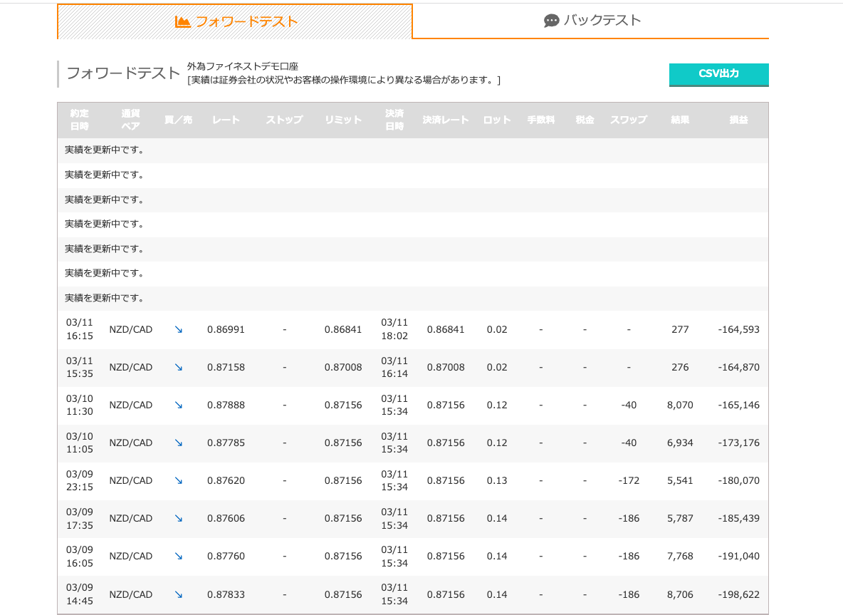 | フォワードテスト | EAをデモ口座、リアル口座で実際に稼働させて成績をテストする |