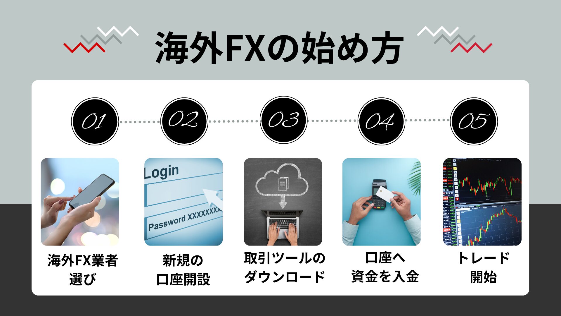 しかし、実際は海外FXの口座開設はとても簡単で、海外FXの始め方の手順を知っておけばスムーズにトレードを始められます。