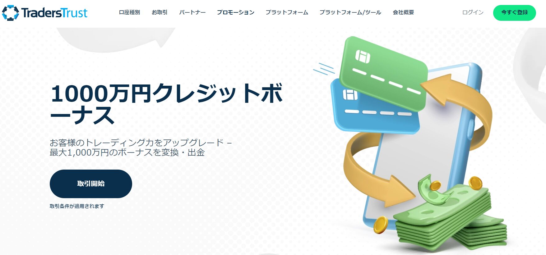 | TradersTrust | 30,000円 | ・初回限定50%ボーナス($500)※2026年1月14日まで | なし |