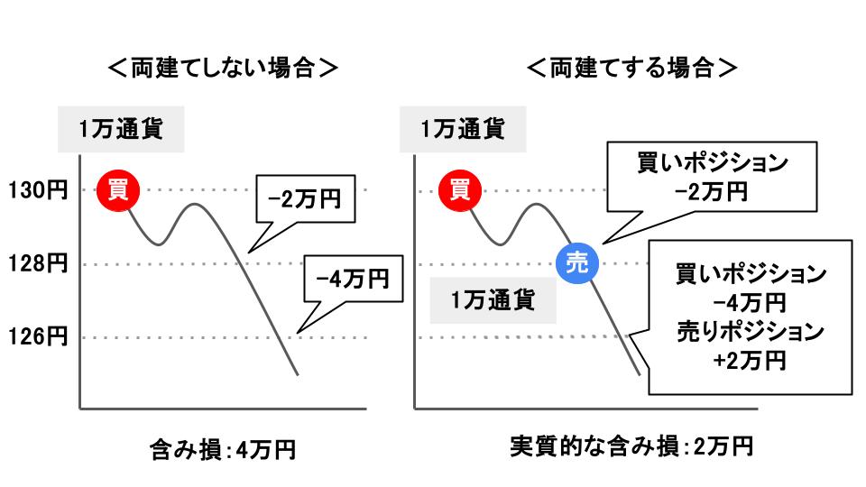 両建てをすれば、一時的に含み損の拡大を防ぐことができます。