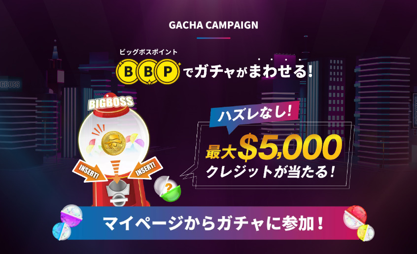 加えて、取引毎にボーナスに交換可能なBigBossPointがもらえます。