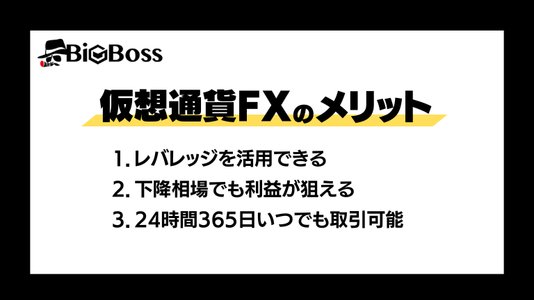 仮想通貨FXには、以下のメリットがあります。
