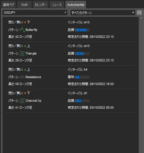 オートチャーティストとは、チャートパターン・キーレベル・フィボナッチなどを自動的に検出してくれるツールです。