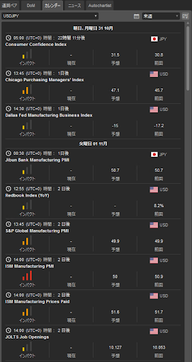 経済指標カレンダーでは、前回の結果と今回の予想をチェックできます。