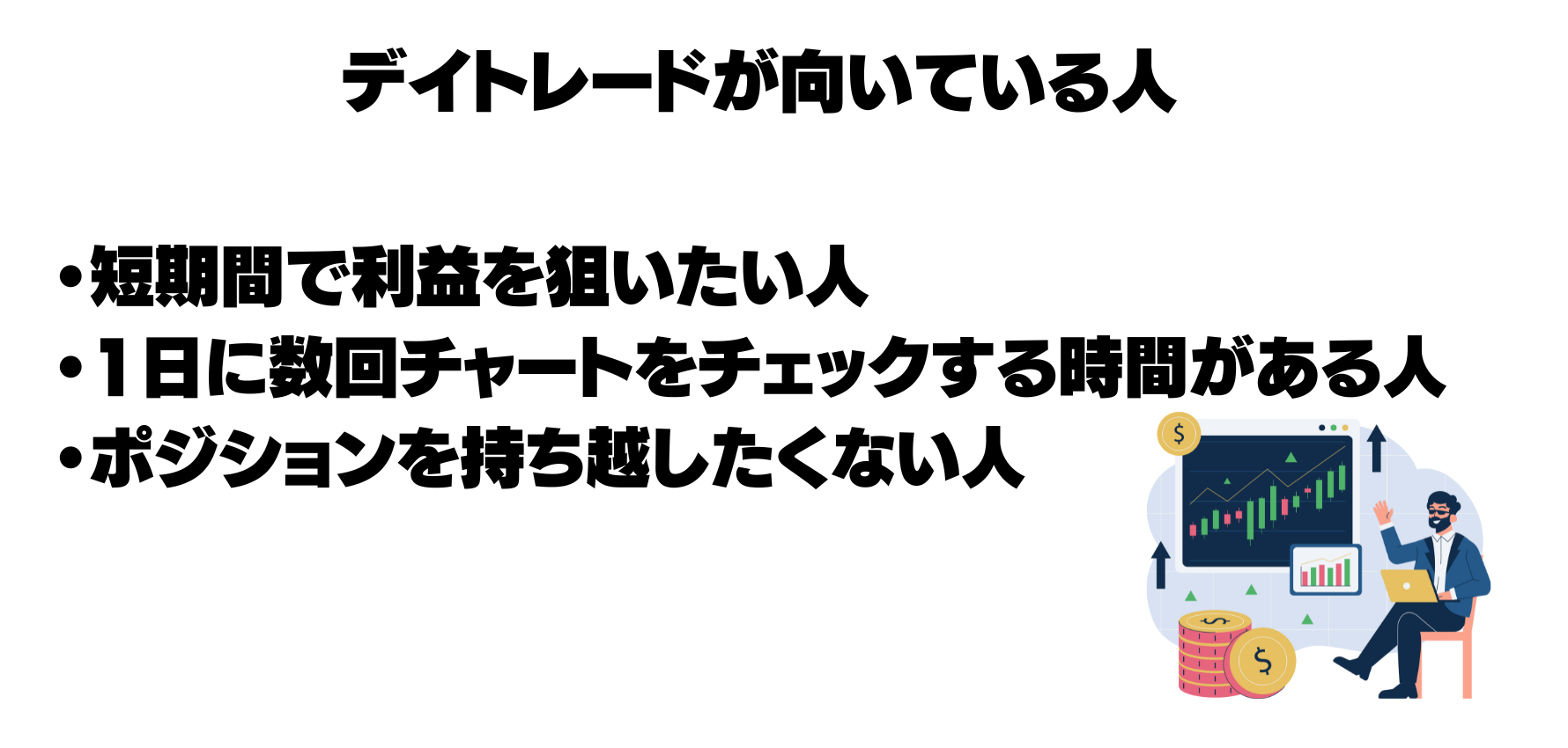 就寝中の損失リスクを避けたい方は、デイトレードを取り入れるのがおすすめです。