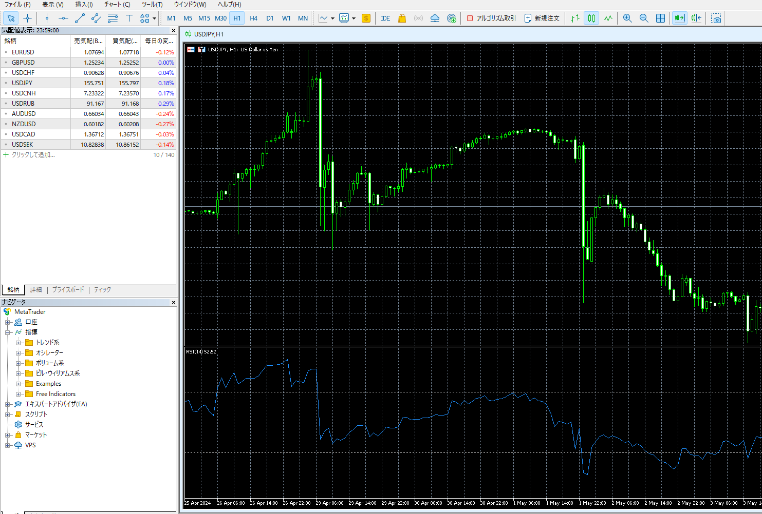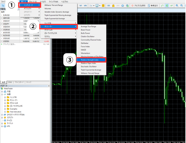 MT4のインジケーターを表示する方法をRSIを例にして紹介します。