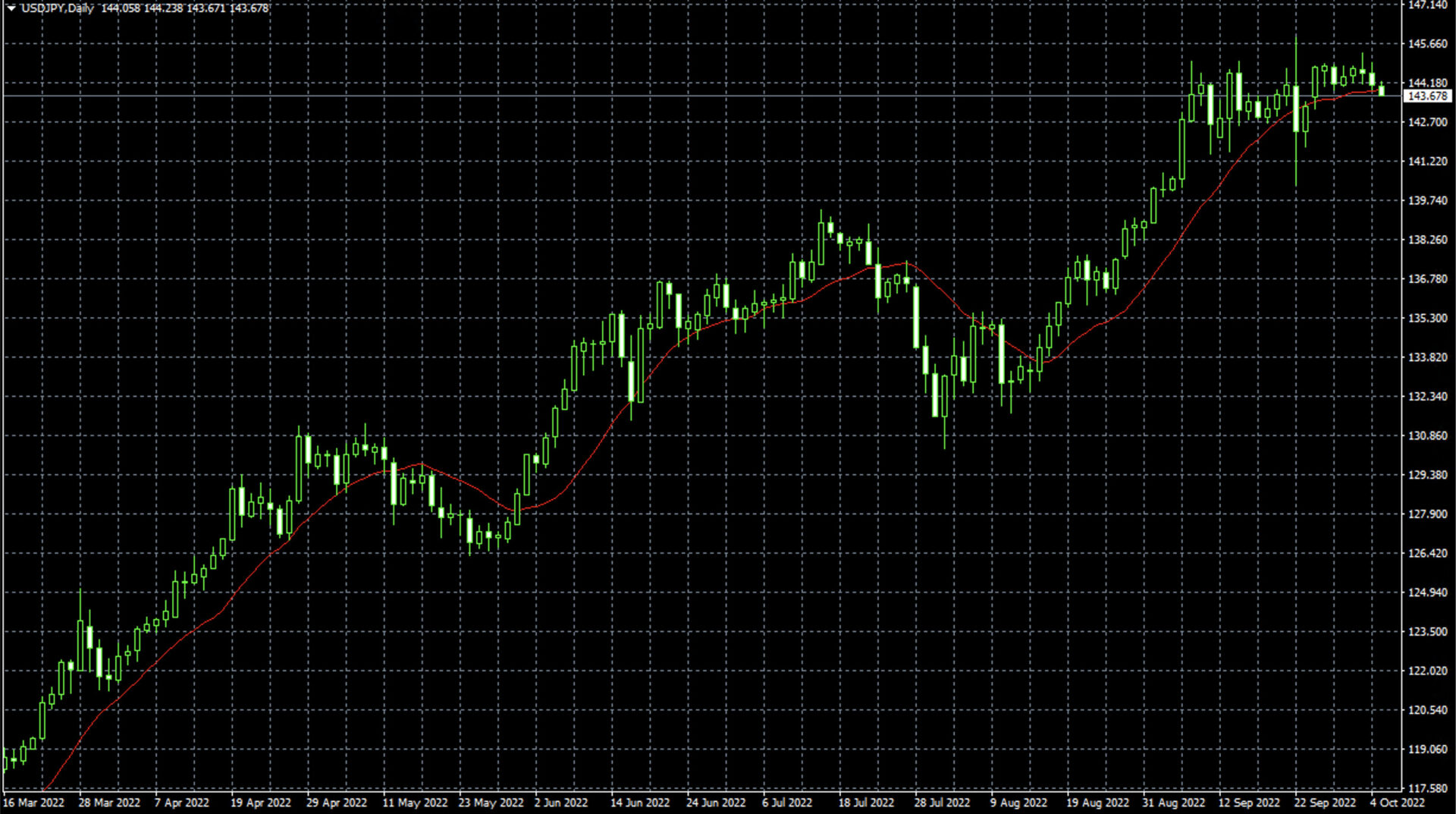 - ローソク足が移動平均線の上にあれば相場の勢いが強く、下にあれば弱い