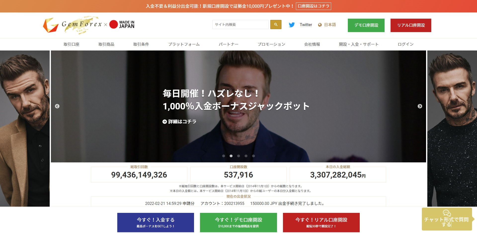 GEMFOREXは日本人トレーダーに人気の高い海外FX業者です。GEMFOREXも国内銀行送金に対応しています。特に入金は即時反映されるので、スムーズに取引を始められます。