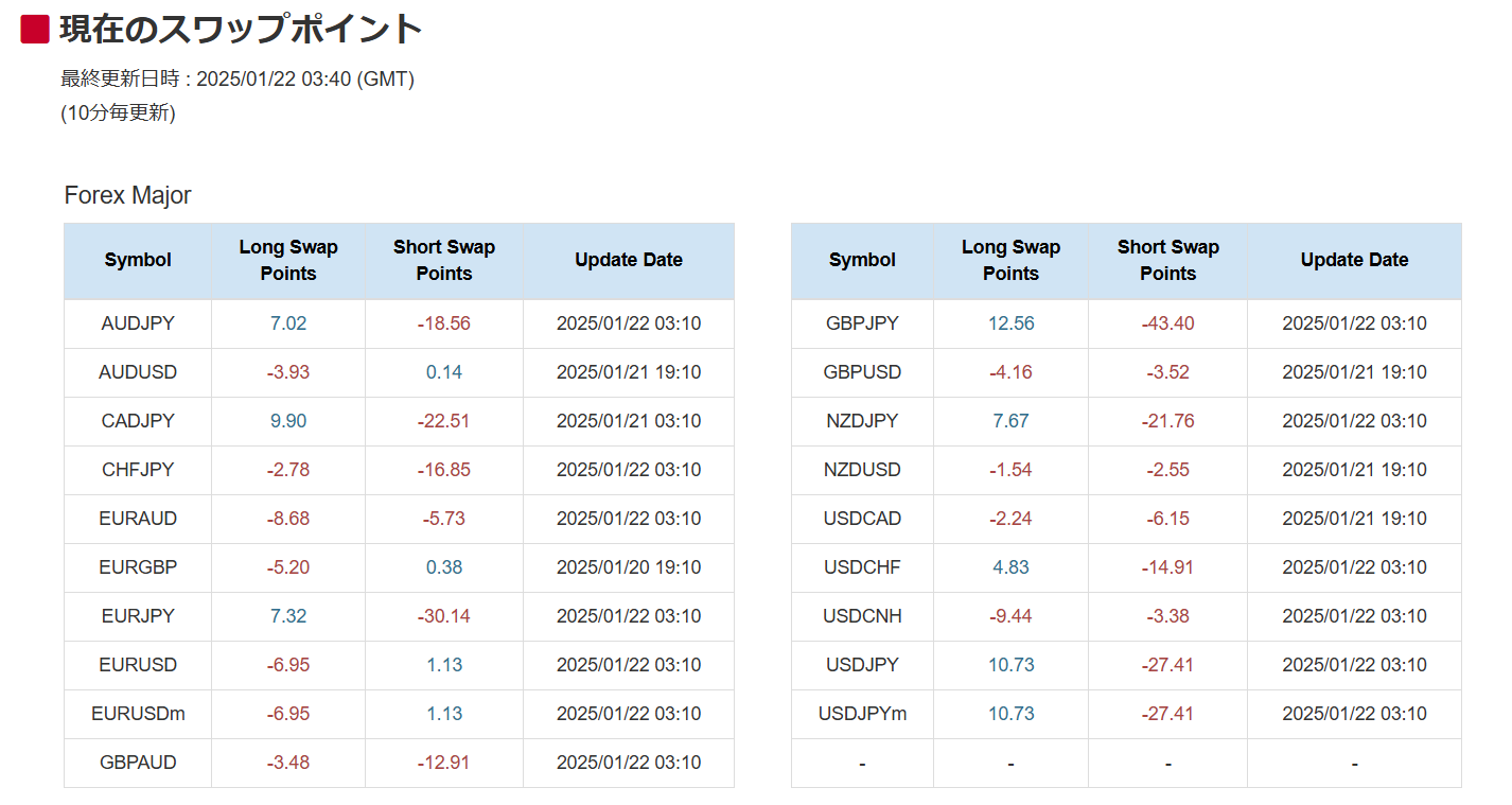 通貨ペアの金利差によっては、ポジションを持ち越してもスワップポイントを受け取れない可能性があります。