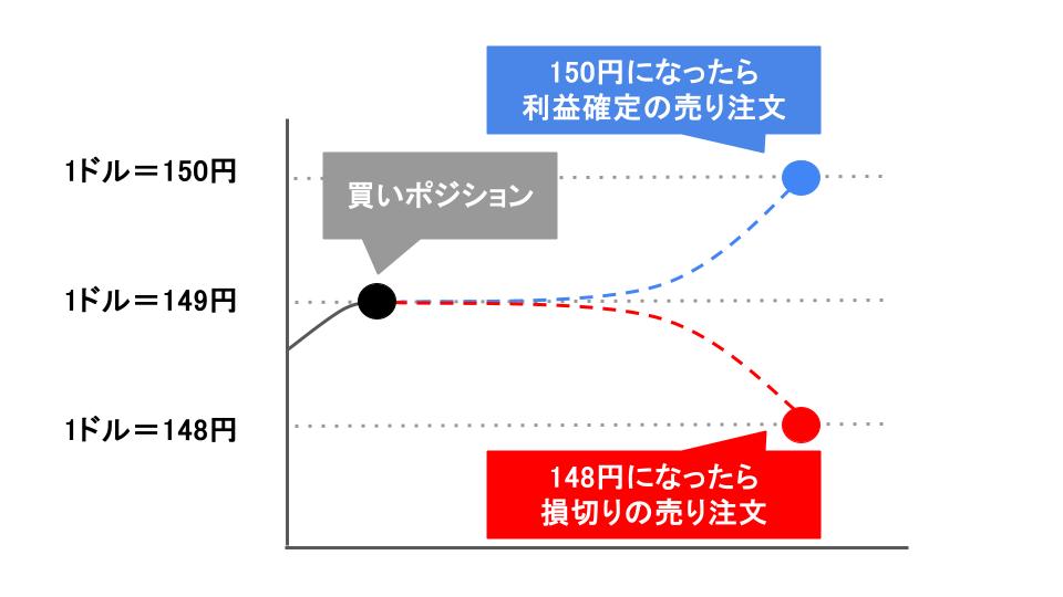 「損失を確定させたくない」という感情から損切りができない状況を避けるためには、設定した損切りラインで自動決済される以下のような注文を入れるのがおすすめです。