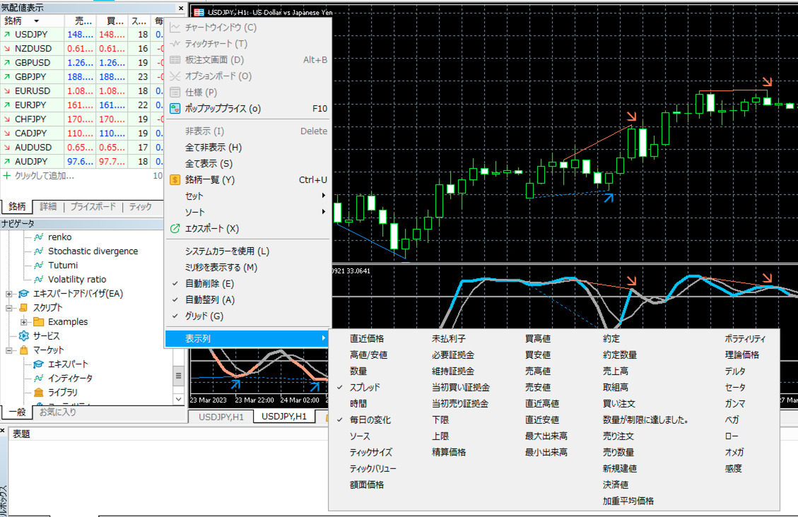 MT4・MT5はともにテクニカル分析に利用できるインジケーターが初めから搭載されています。