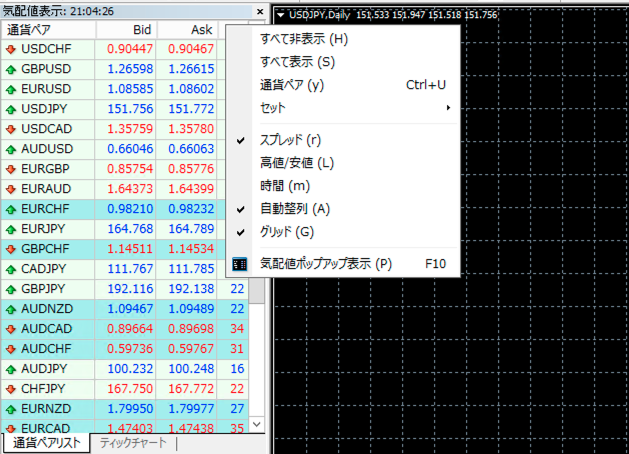 移動平均線やボリンジャーバンド、RSIといった主要なインジケーターは、どちらのプラットフォームでも利用可能です。