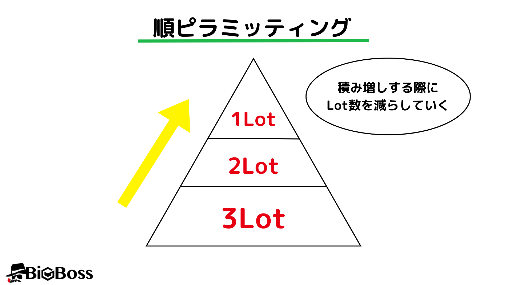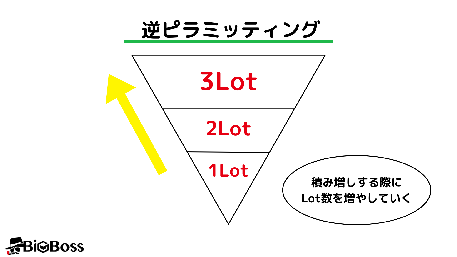 なお、今回説明したリフレクティングピラミッディングは徐々にロットを減らしましたが、逆に増やしていく方法もあります。