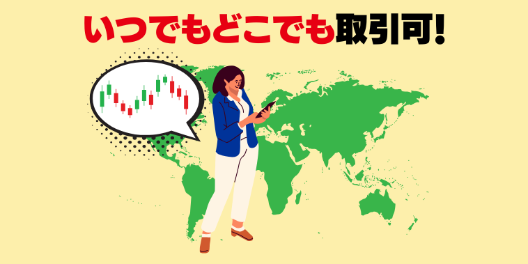 - 24時間どこでも取引ができる