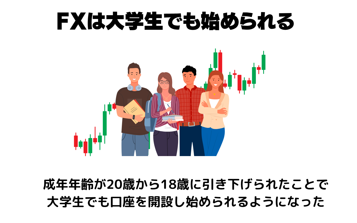 2022年4月より成年年齢が20歳から18歳に引き下げられたことで、多くのFX業者で大学生となる18歳から口座開設ができるようになりました。