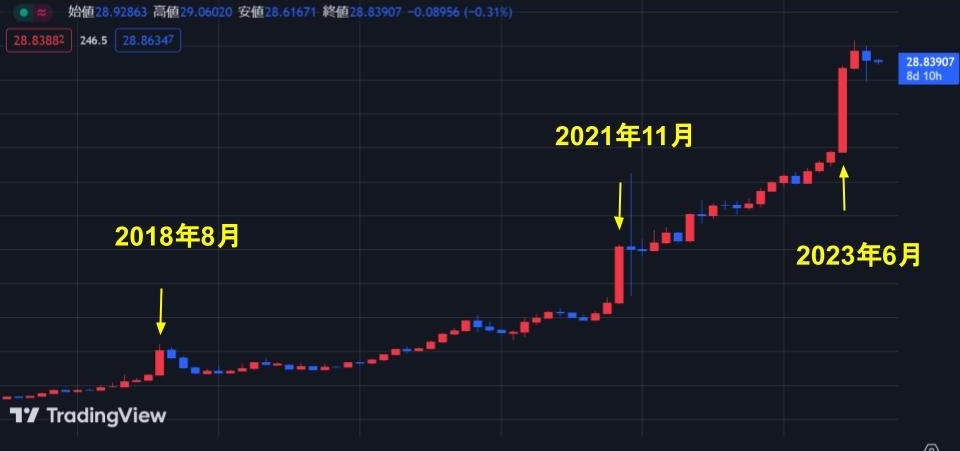 その結果、ユーロ/トルコリラは6月27日に史上最高値28.5762となり、トルコリラの価格が大きく下落することになりました。