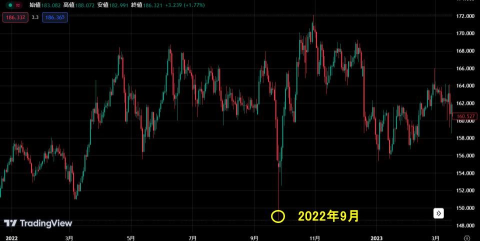 インフレを抑えるためにイギリスが利上げをしたことで、ポンド/円の金利差が拡大し、一時的に円安ポンド高に傾きました。