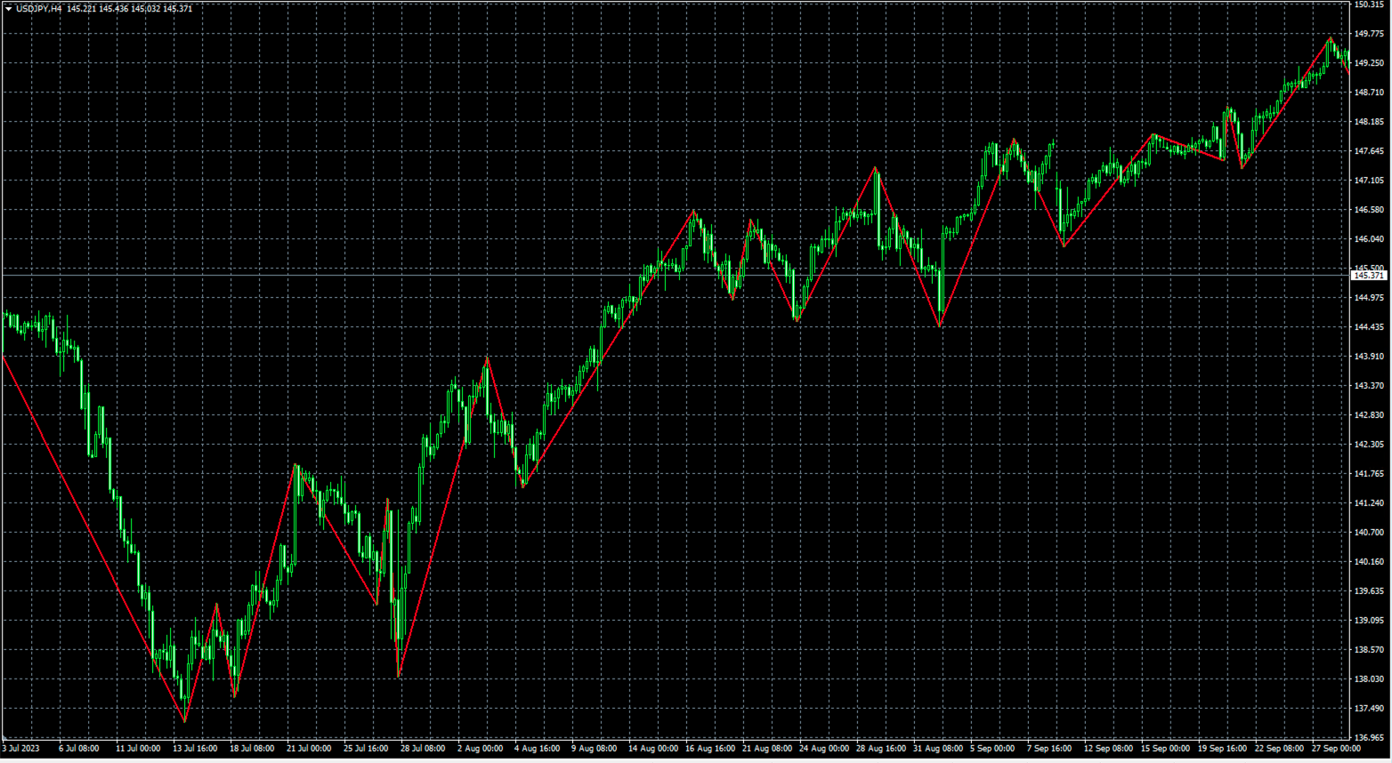 ZigZagは、高値や安値を視覚的に表示するので、一目でトレンドを判断できます。