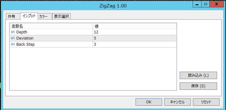 いずれのパラメータも、数値を小さくするとZigZagが細かくなり、数値を大きくするとZigZagが大きくなります。