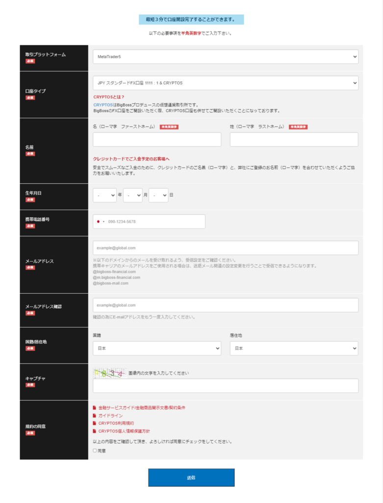 口座開設のURLをクリックしたら、必要事項を入力する画面が表示されます。