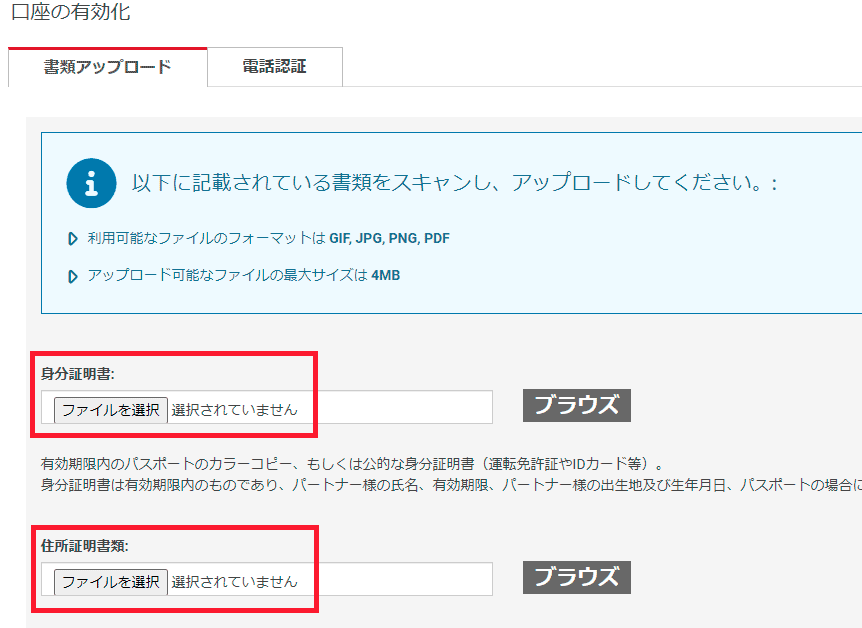 3:必要書類(身分証明書と住所確認書類)2点を提出します。