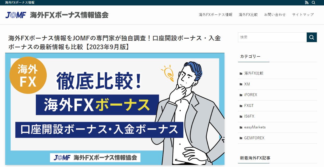 海外FXボーナス情報協会は、JOMFの専門家が「海外FXボーナス(口座開設ボーナス&入金ボーナス)の最新情報」を中心に、海外FX業者のボーナスキャンペーンやレバレッジ、スプレッドなどを掲載しているサイトです。
