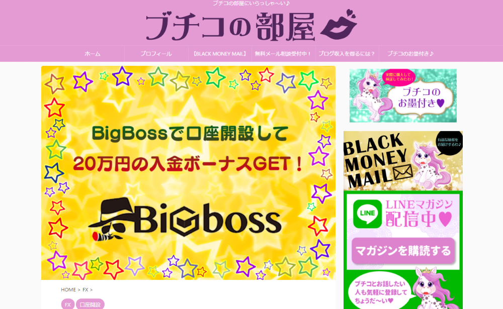 ブチコの部屋では、インターネットビジネスの中でも「FX」と「アバターを使ったブログビジネス」について情報発信しています。